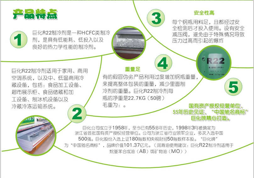 R-134a主要用途R-134a作为使用最广泛的中低温环保制冷剂,由于HFC-134a 良好的综合性能,使其成为一种非常有效和安全的CFC-12的替代品,主要应用于在使用 R-12(R12、氟利昂12、F-12、CFC-12、Freon 12、二氯二氟甲烷)制冷剂的多数领域,包括:冰箱、冷柜、饮水机、汽车空调、中央空调、除湿机、冷库、商业制冷、冰水机、冰淇淋机、冷冻冷凝机组等制冷设备中,同时还可应用于气雾推进剂、医用气雾剂、杀虫药抛射剂、聚合物(塑料)物理发泡剂,以及镁合金保护气体等。R134a包装300g/罐*30罐/箱、13.6kg、100kg、930kg、ISO Tank。R-134a储存、运输R-134a制冷剂钢瓶为带压容器,储存时应远离火种、热源、避免阳光直接曝晒,通常储放于阴凉、干燥和通风的仓库内;搬运时应轻装、轻卸,防止钢瓶以及阀门等附件破损。R-134a配套使用冷冻机油通常与R-134a制冷剂配用的冷冻机油有:Reflube SE系列、Emkarate RL32H、RL68H 、RL100H、RL170H、RL220H、Solest系列等;在不同设备、不同应用场所最终使用何种冷冻油,应遵照冷冻压缩机和制冷(空调)设备厂商的建议、或根据该制冷压缩机、制冷设备使用的具体情况来确定使用同等设计要求的冷冻机润滑油,即选用对等的冷冻机油(广州中冷贸易有限公司专业提供各种品牌各种类型压缩机的冷冻机油使用参考、对照)。