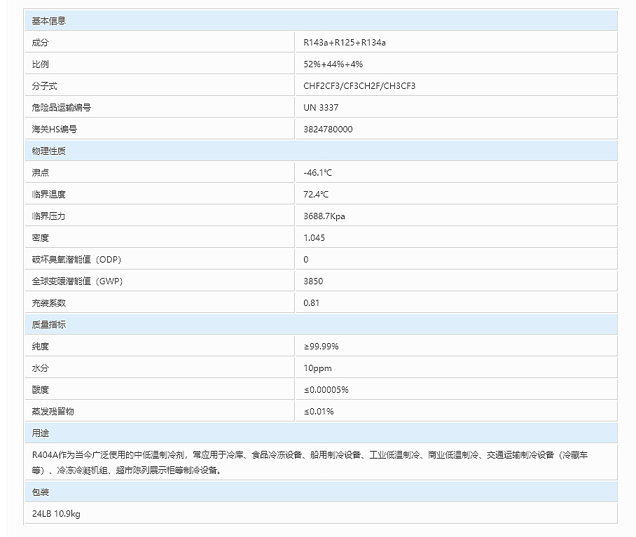 R-404A配套使用冷冻机油通常与R-404A制冷剂配用的冷冻机油有:Reflube SE32、Reflube SE170、EMKARATE RL32H、RL170H等;在不同设备、不同应用场所最终使用何种冷冻油,应遵照冷冻压缩机和制冷(空调)设备厂商的建议、或根据该制冷压缩机、制冷设备使用的具体情况来确定使用同等设计和技术员要求的冷冻机润滑油,即选用对等的冷冻机油(广州中冷贸易有限公司专业提供各种品牌各种类型压缩机的冷冻机油使用参考、对照)。